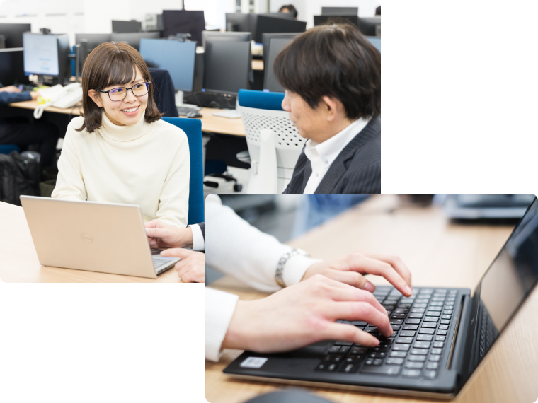 社員の成長のステージに合わせた教育・研修制度を整え、一人ひとりのキャリア形成を手厚くサポートします。また、「複線型人事制度」を導入し、個々の志向に応じたキャリアコースを選択できる仕組みを提供。多様な分野で活躍できる環境が整っています。